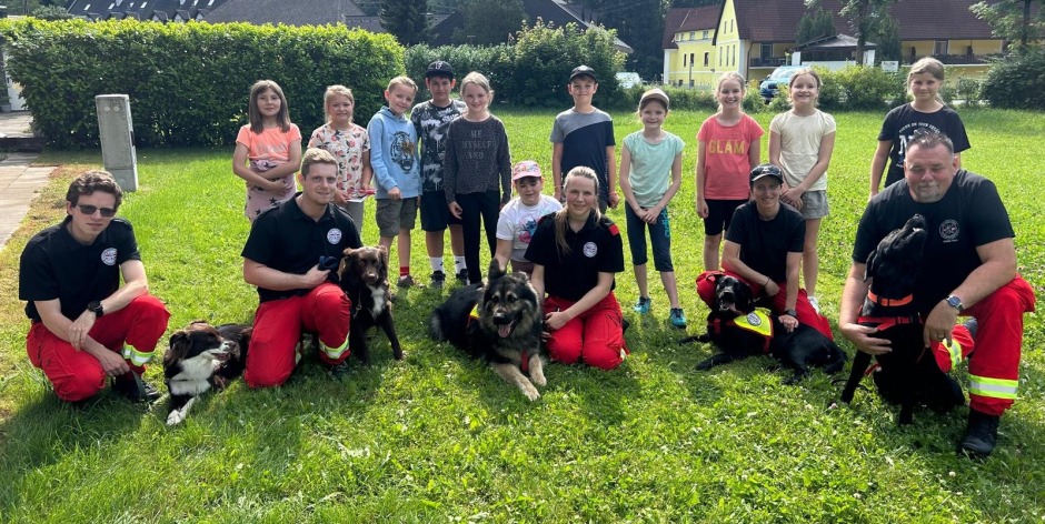 Bei den Bediensteten der Rettung hatten die Kinder die Möglichkeit einen Blick in ein Rettungsauto zu werfen und konnten sich sogar in eine Vakuummatratze schnüren lassen. Solche Vakuummatratzen werden verwendet, wenn verletzte Menschen ins Krankenhaus transportiert werden müssen. Das große Highlight war jedoch die Rettungshundestaffel. Hier erlebten wir die Spürnasen hautnah bei der Arbeit und bekamen einen Eindruck davon, welch große Hilfe unsere tierischen Freunde in einem Notfall sein können.